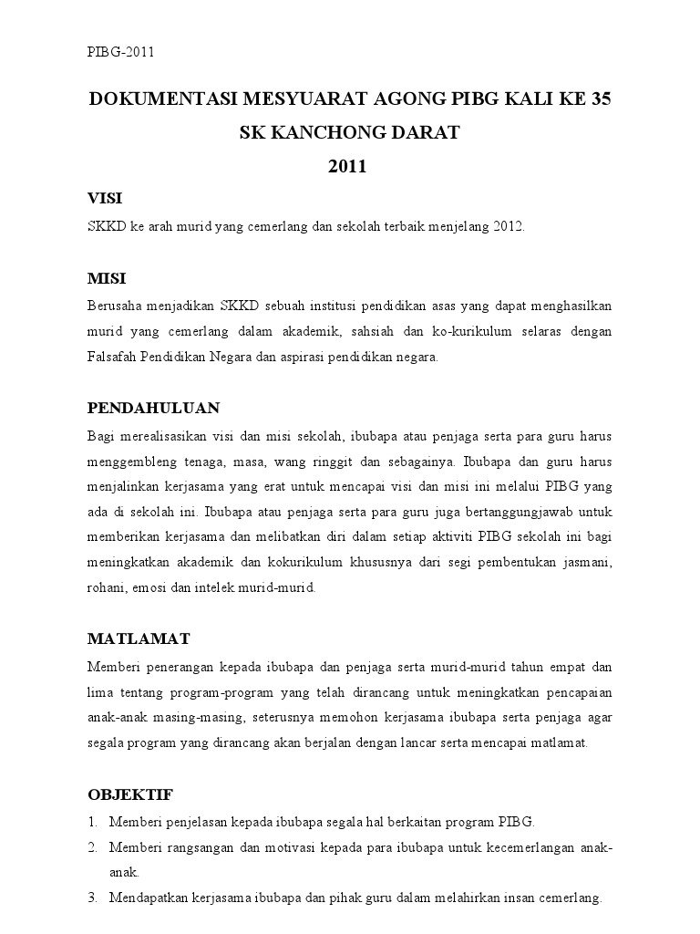Dokumentasi Mesyuarat Agung Pibg Kali Ke 35 Pdf